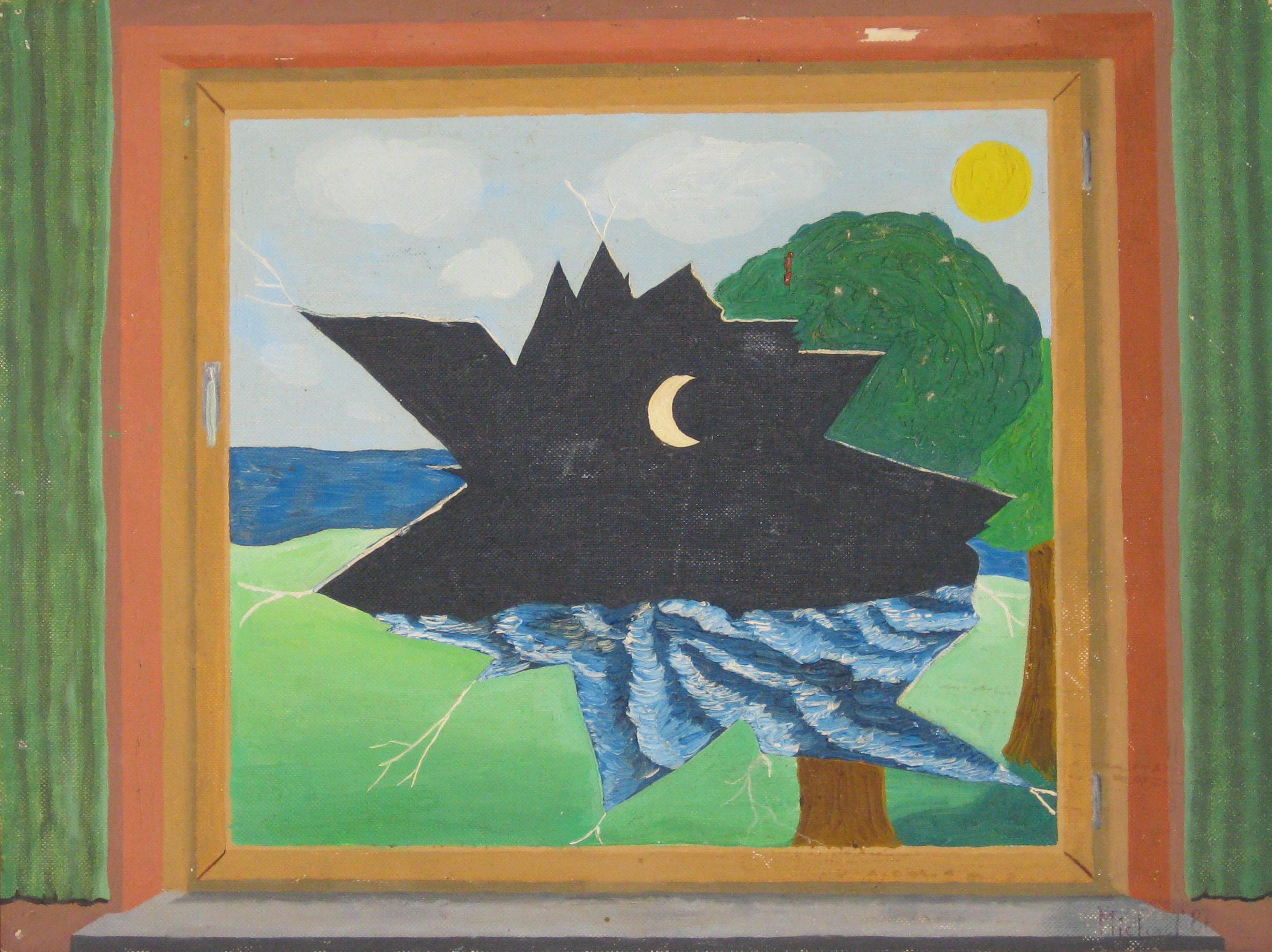 | Eine meiner ersten Arbeiten. Sie ist im Frühjahr 1986 entstanden, nachdem mir zu Weihnachten ein Ölfarb-Malkasten geschenkt worden war. | |