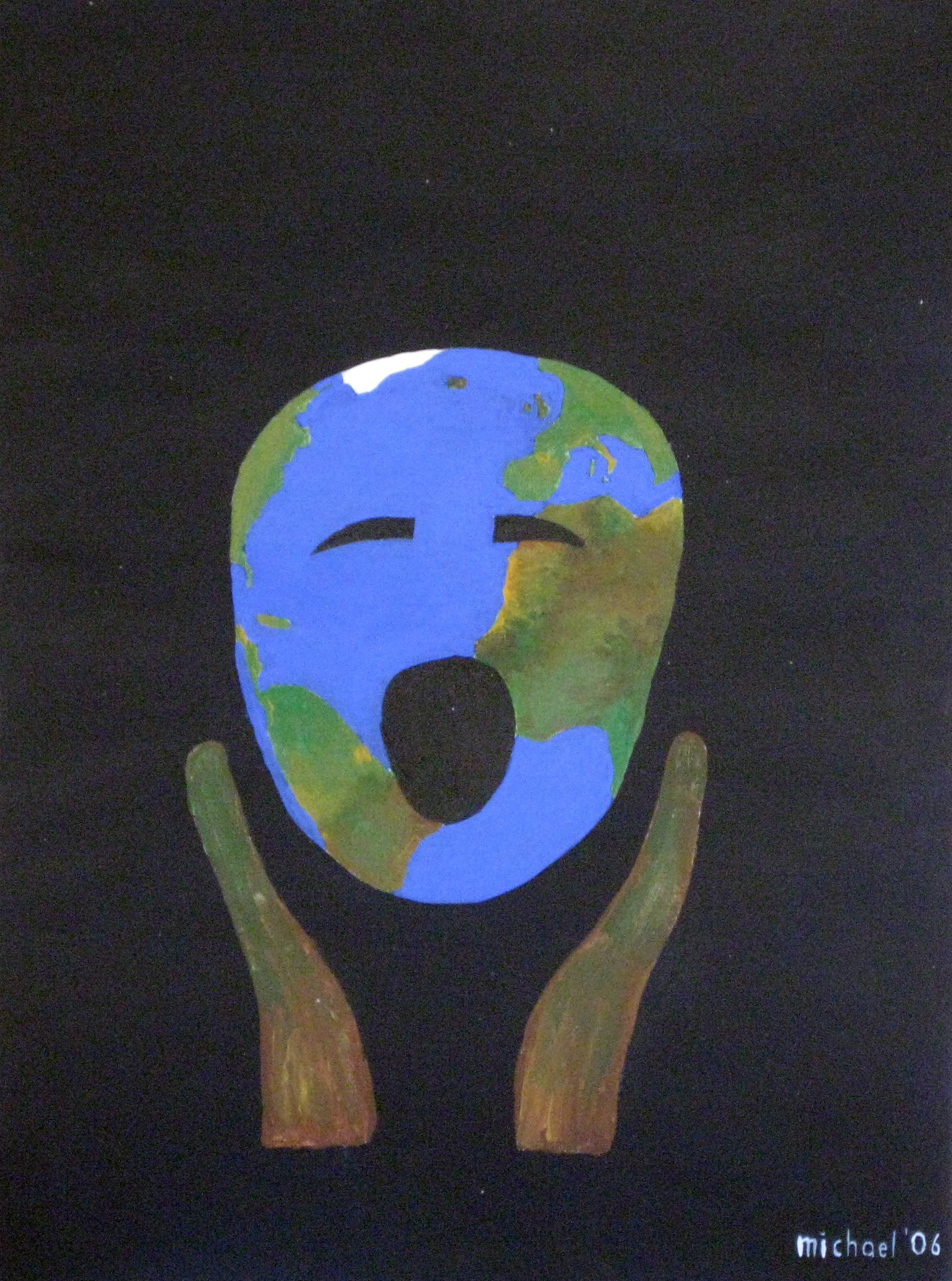 | Wenn das Gesicht die Struktur eines Globus hat, beginnt die Welt zu "schreien". | |